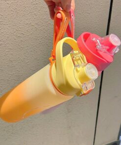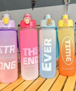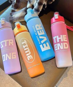 1000ml Water Bottle Matte Rainbow Gradient Plastic Sports Drink Bottle