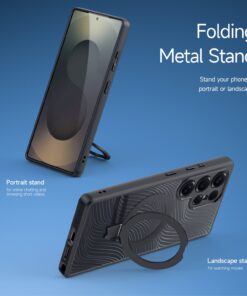 MAGNETIC KICKSTAND RING: Featuring a sleek magnetic kickstand ring phone holder design, this case is compatible with MagSafe technology. Effortlessly attach or detach your phone from various MagSafe-compatible accessories. The kickstand design allows you to easily fold or unfold it, enabling you to place your phone on any table conveniently. Elevate your phone experience now with added functionality!