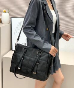 arge Capacity Quality Classic Quilted Business Style Cross Shoulder PU Leather Tote Bag