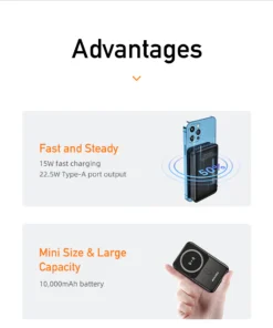 USAMS 10000mah 22.5W Fast Magnetic Wireless Portable Powerbank