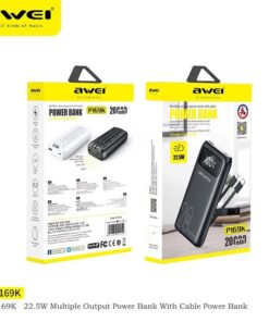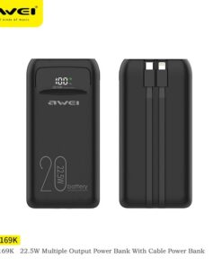 Awei P169K 20000mAh 22.5W Fast Charging Dual Input Dual Output with Built-in Cable LCD Display Power Bank