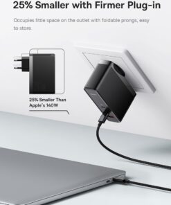 ● Strong and Powerful: 100W power output to fast charge all USB-C laptops at maximum supported speed. Only 2 hours to fully charge the 96W MacBook Pro 16-inch, or charge up to 2 laptops simultaneously (Compatible with Lenovo, Dell, HP, Chromebook, Surface, Acer and more)