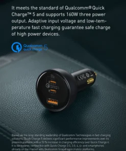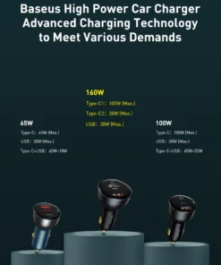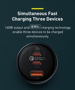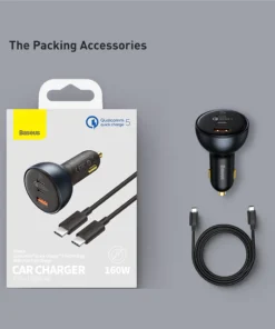 Baseus 160W Car Charger QC 5.0 Fast Quick Charging PD3.0 USB Type C Car Charger