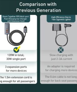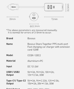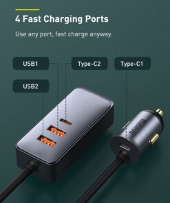 Baseus120W USB Type C 4.0 Fast Charging Four Port Car Charger