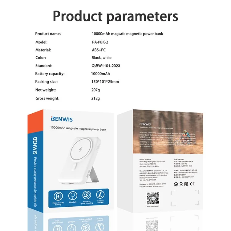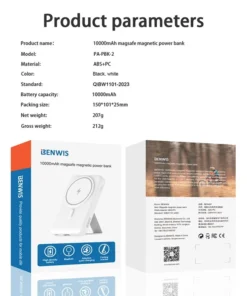 BENWIS PA-PBK-2 10000mAh Compatible with Magsafe Battery Phone Stand Magnetic Power Bank Charger (CE, FCC)