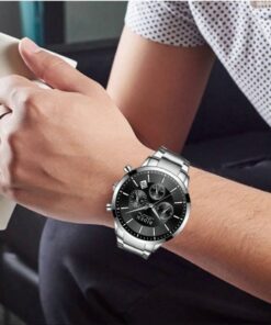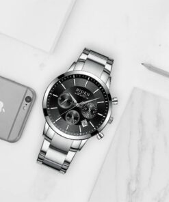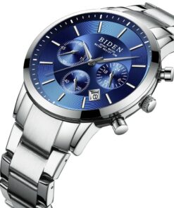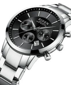 Brand Name: BIDEN -Model Number: 0029 -Movement: Quartz -Style: Business,Luxury,Fashion -Case Shape: Round -Band Material Type: Stainless steel -Case Material: Stainless steel -Dial Window Material Type: Glass -Buckle Type: Folding Buckle with Safety -Feature: Auto Date -Shockproof Waterproof Depth: 3Bar (Can’t touch hot water, Can’t press any button under water) ·Specifications (approx.): -Dial Diameter: 41mm -Case Thickness: 12mm -Band Width:20mm -Band Length: 260mm