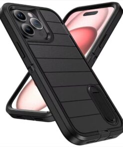 Heavy Duty Shockproof 3-Layer Military-Grade Rugged Protective Bumper Phone Case with Kickstand Anti-Slip Grip Shockproof For iPhone 16 15 14 13 12 11 Pro Max Series