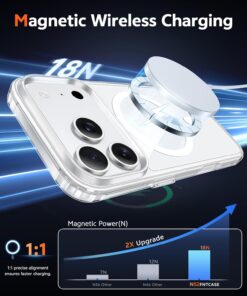 - Strong Magnetic Attraction: Compatible for Magnetic chargers and other Qi Wireless chargers without signal influence. The iPhone 17 Pro Max magnetic case has built-in 38 super N52 magnets. Its magnetic attraction reaches 2400 gf