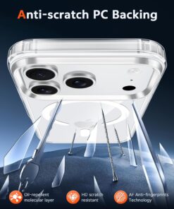 - Crystal Clear & Never Yellow: Using high-grade Bayer’s ultra-clear TPU and PC material, allowing you to admire the original sublime beauty for iPhone 17 Pro Max while won’t get oily when used. The Nano antioxidant layer effectively resists stains and sweat
