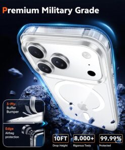 - 10FT Military Grade Protection: Passed Military Drop Tested up to 10 FT. This iPhone 17 Pro Max clear case backplane is made with rigid polycarbonate and flexible shockproof TPU bumpers around the edge and features 4 built-in corner Airbags to absorb impact