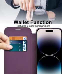 (Card Storage) This notebook style case is made for Samsung Galaxy S23/S22 Ultra with 3 card slots and a free pocket on the inside