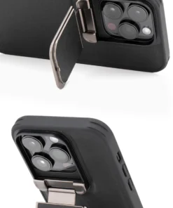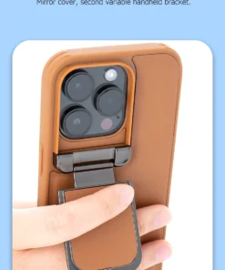 iPhone 16/15 Pro Max Series Genuine Leather Back Lens Protection Cover, Anti -Scratch and Protect Privacy Flip Aluminum Alloy Stand Slim Cover
