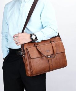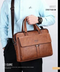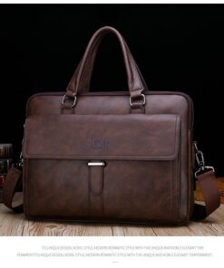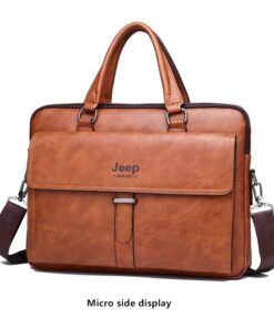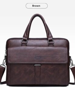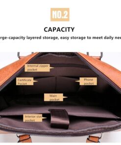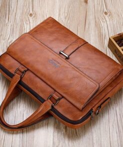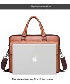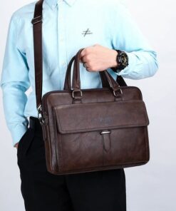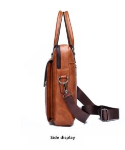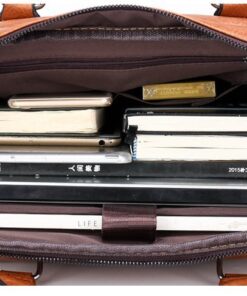 Leather pouch made from high quality materials which fits work with multiple pockets and laptop fits