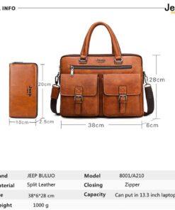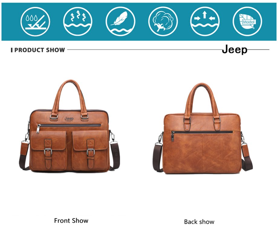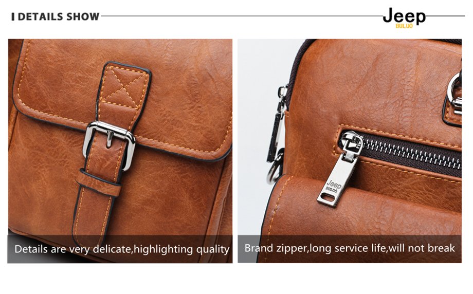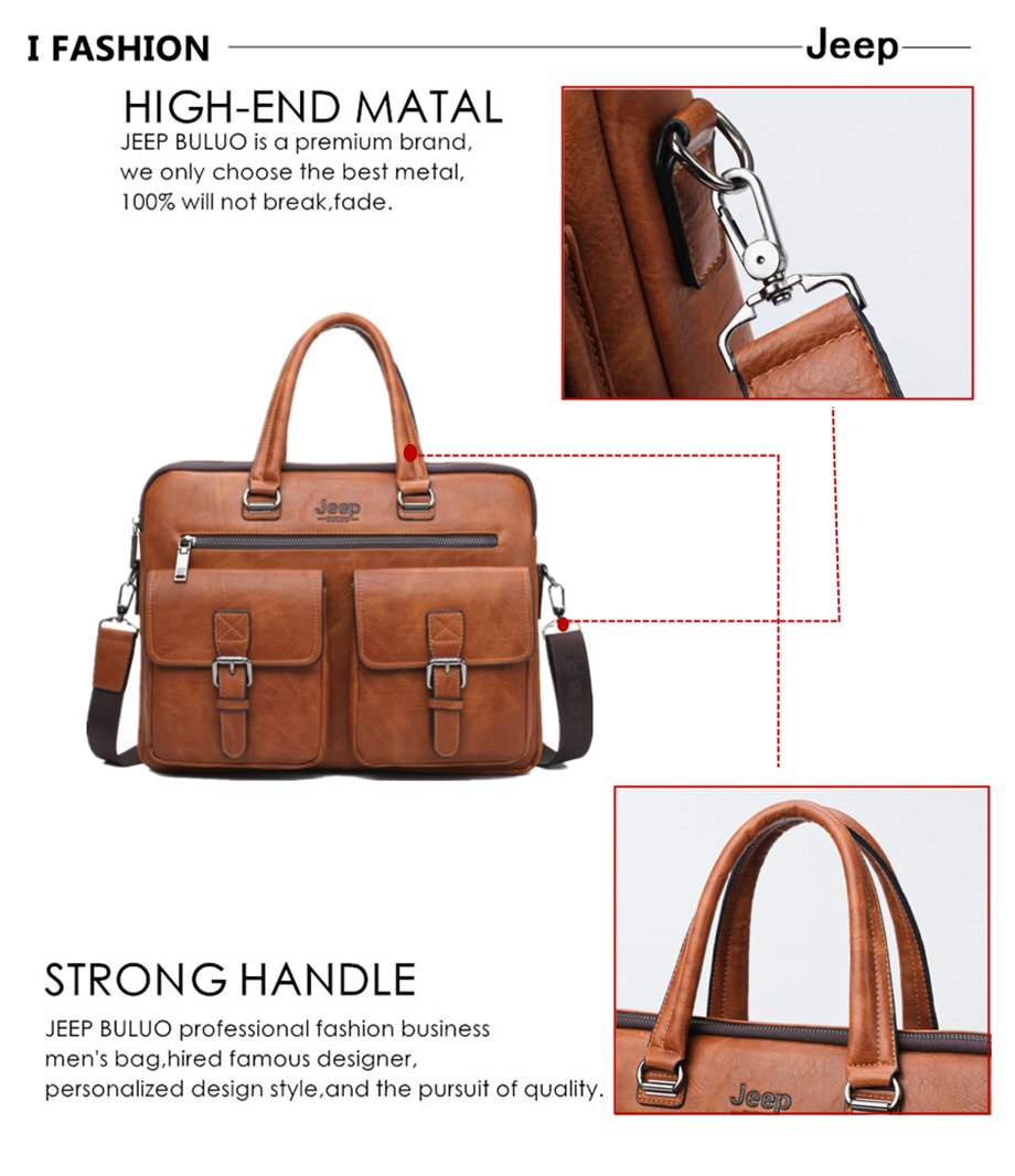 JEEP BULUO Retro PU Leather Business Laptop Bag