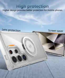 KEYSION Transparent Magnetic Ring Case Cover For Samaung Galaxy S23 Ultra
