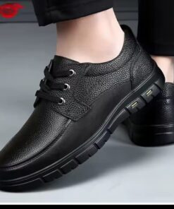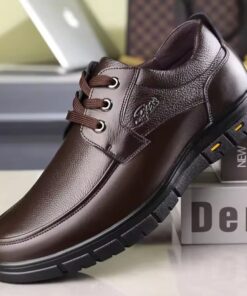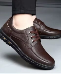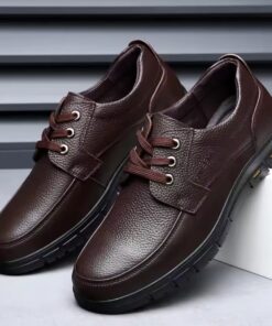 Laced Premium Grain Leather Men’s Casual Loafers – Flat Platform Walking Shoes
