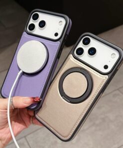 Experience luxury and functionality with the LuxRotate 360° Magnetic Leather Stand Case for iPhone 17 Pro Max. Designed with a premium rotating kickstand, magnetic compatibility, and protective edges, this case blends style with everyday durability.