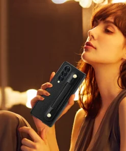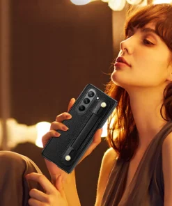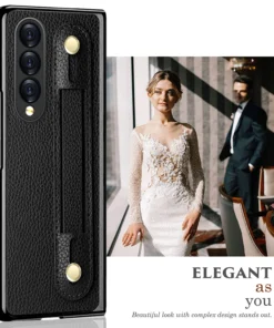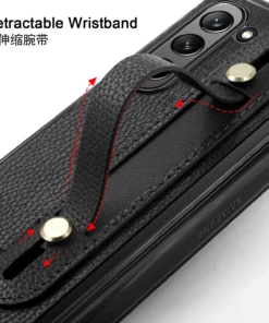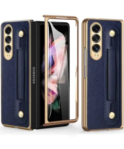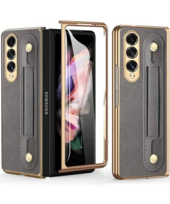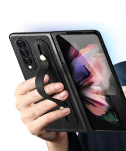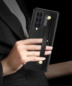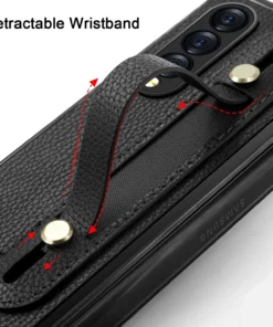 Luxury Premium Fashion Design Anti-Sweat Leather Wristband Folding Case Cover For Samsung Z Fold 3/Z Fold 4