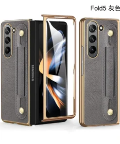 Luxury Premium Fashion Design Anti-Sweat Leather Wristband Folding Case Cover For Samsung Z Fold 5
