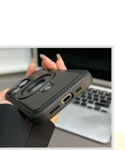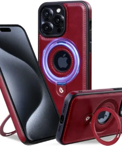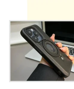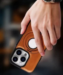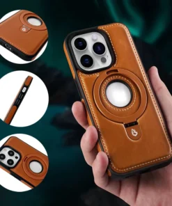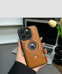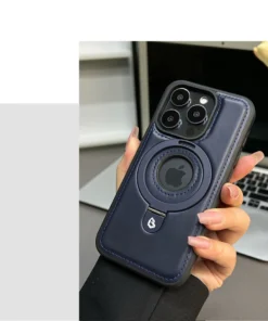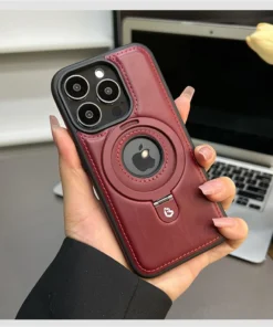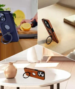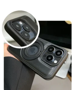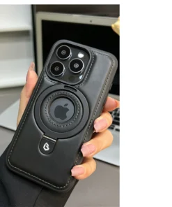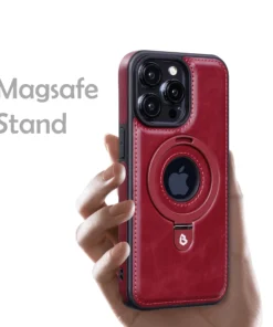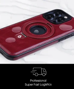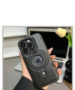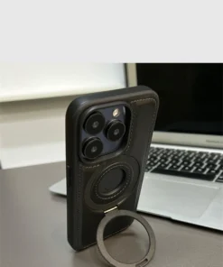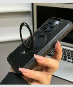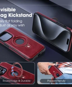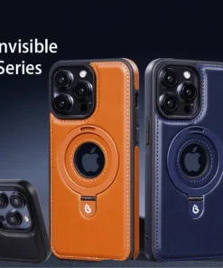 Luxury Premium Faux Leather Invisible Ring Stand Magnetic Phone Case for iPhone Series