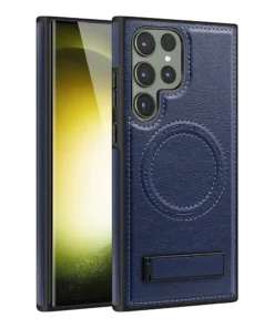 Luxury Premium Luxury PU Leather Invisible Stand Magnetic Wireless Charging Case Cover For Samsung Galaxy S22 Ultra/S23 Ultra