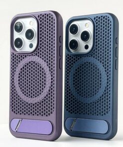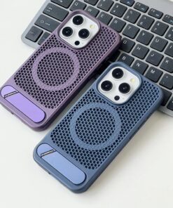Luxury Premium Mesh Heat Cooling Wireless Charging MagSafe Invisible Stand Hard Case Cover For iPhone Series