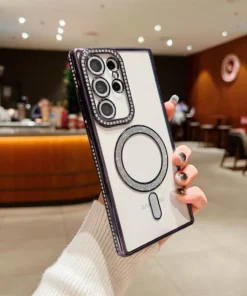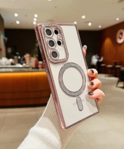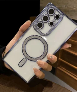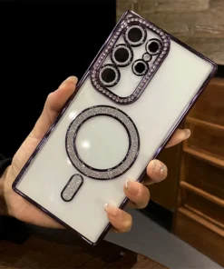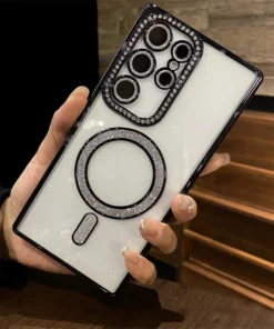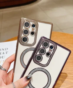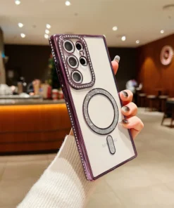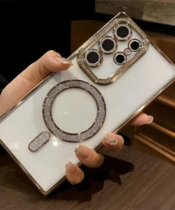Luxury Premium Plating Bling Glitter Diamond Magnetic For Magsafe Phone Case For Samsung S24 Ultra