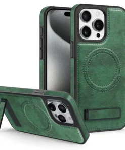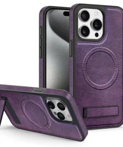 Luxury Premium PU Leather Invisible Stand Magnetic Wireless Charging Case Cover For iphone 15 Pro Max