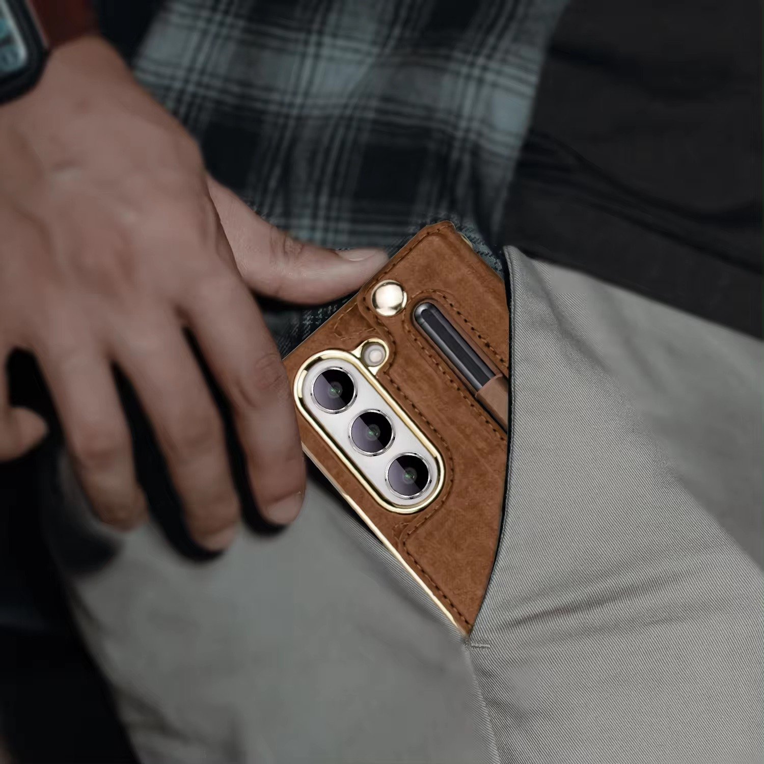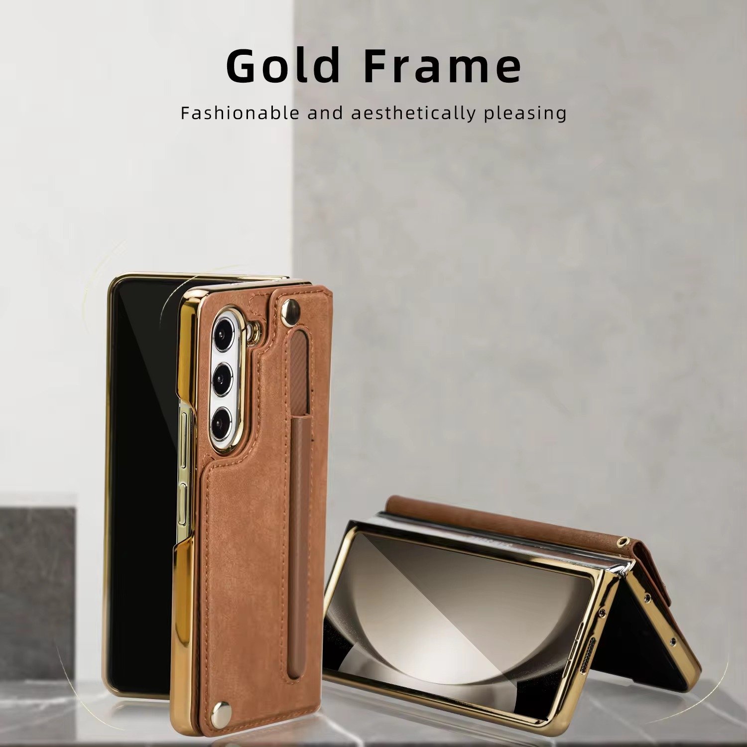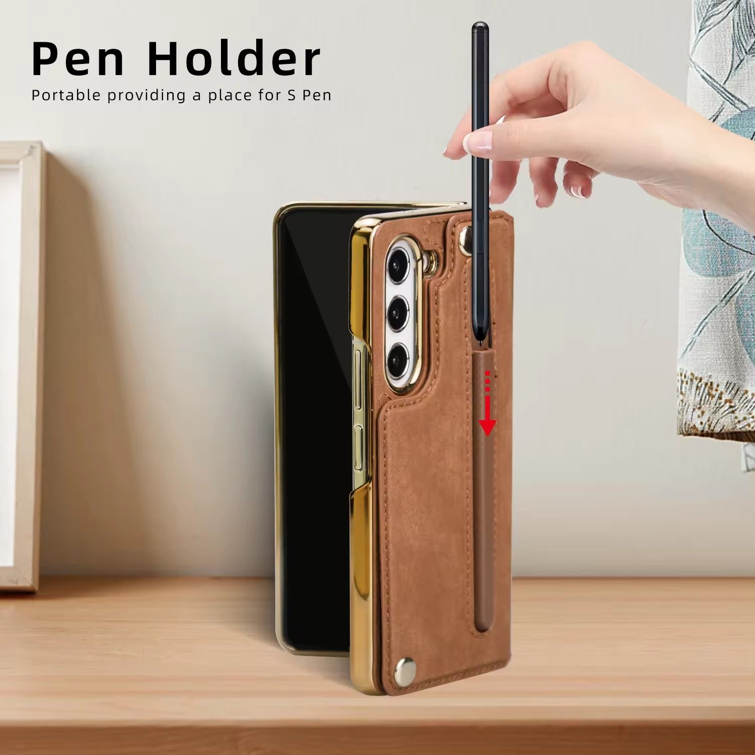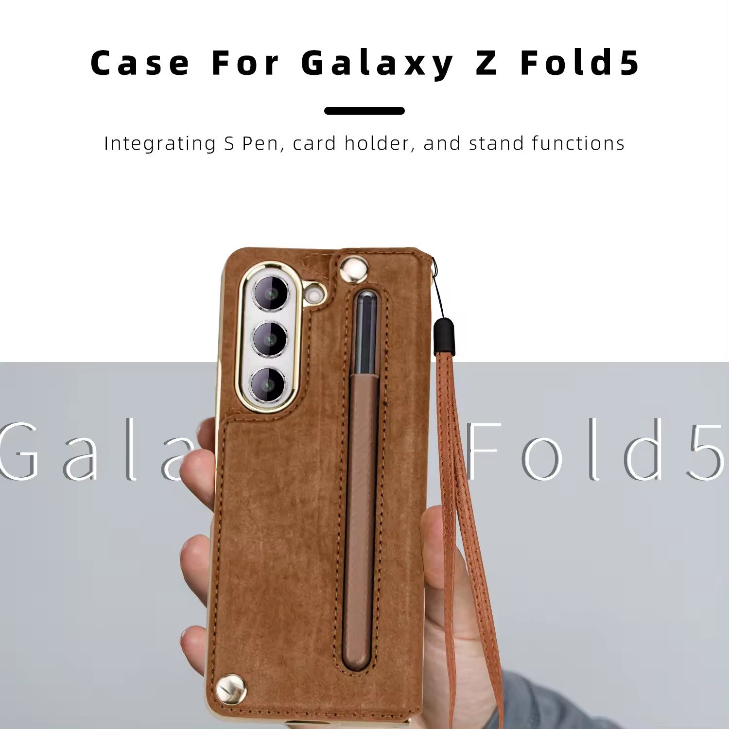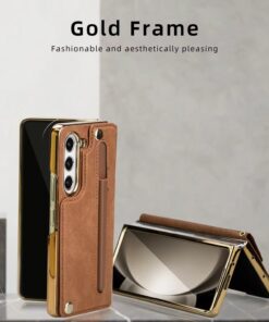 Luxury Premium Rugged Leather Wallet Card Slot Stand Phone with Pen Holder For Samsung Galaxy Z Fold 5
