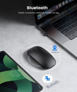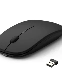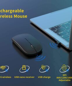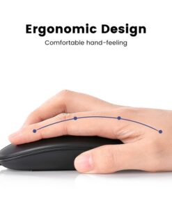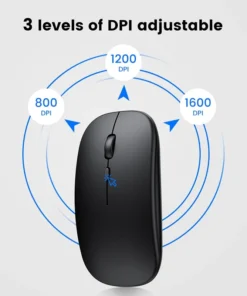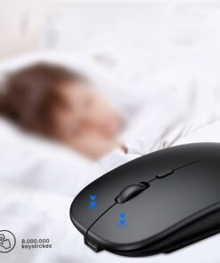 This wireless computer mouse has a built-in rechargeable battery and is equipped with a USB charging cable. It can last a long time on a single charge. And the intelligent automatic sleep function and on/off switch help you go further.