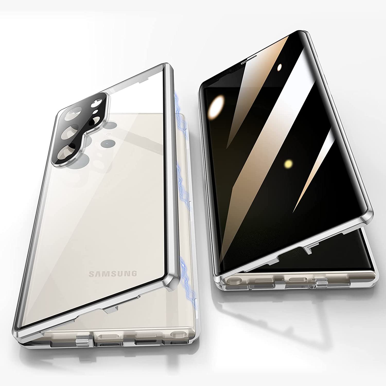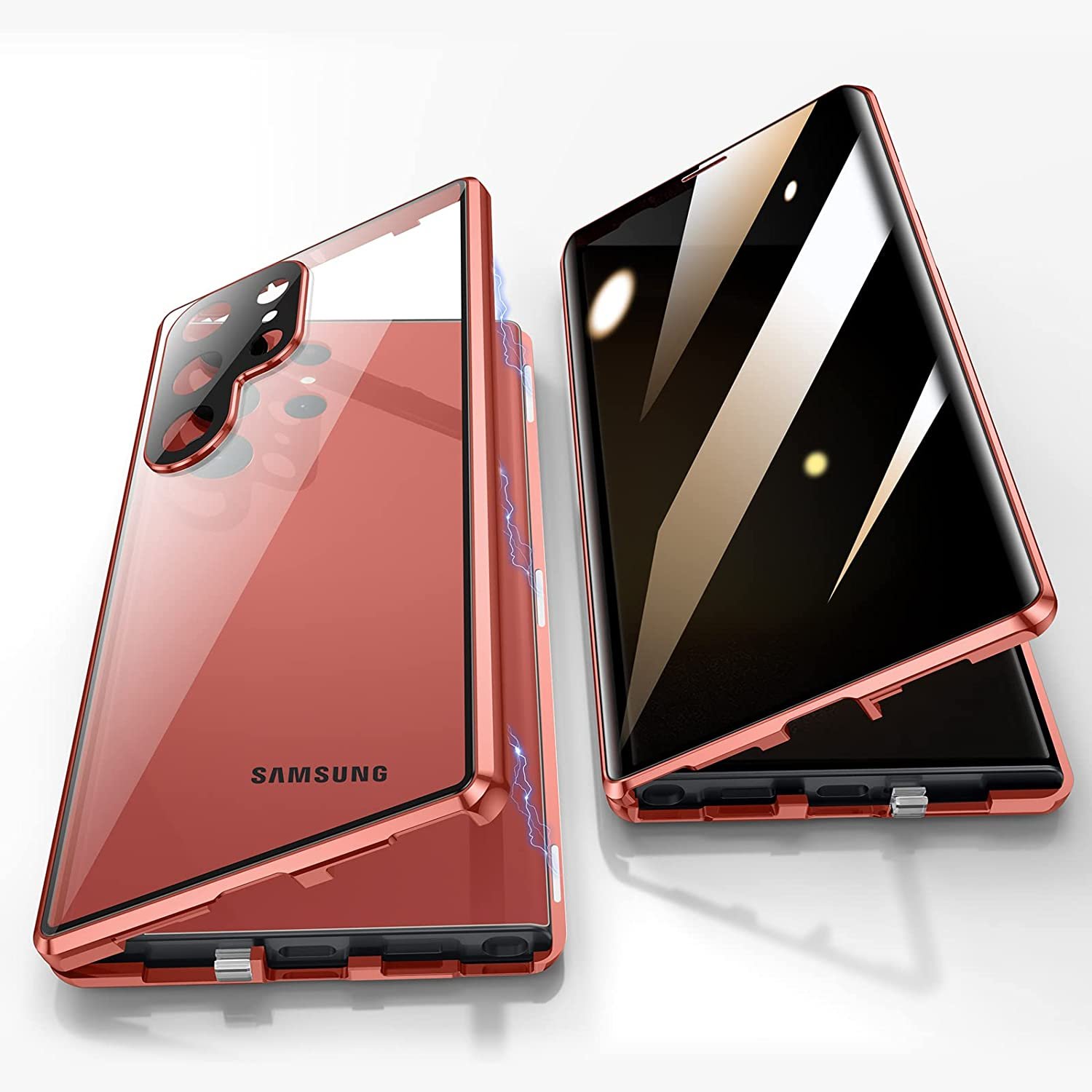 MAGNETIC CASE: Double sided magnetic phone case for s23 ultra adopts creative multipoint magnetic adsorption technology, Strong magnetic adsorption makes frame and slim magnetic tempered glass s23 ultra case seamlessly connected, not easy to fall off.