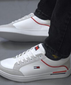 Iconic Tricolor Design: Features the signature red, white, and blue flag logo on the side and tongue, with a matching accent stripe on the clean white midsole.