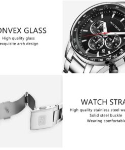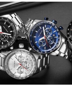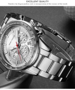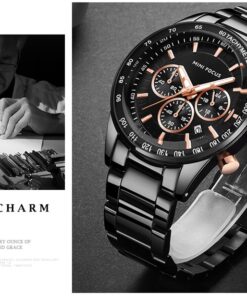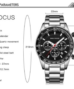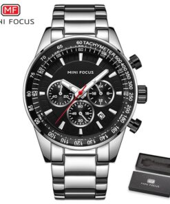 MINI FOCUS Waterproof Sport Watch Chronograph Men Casual Stainless Steel Quartz Clock