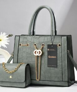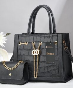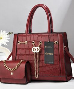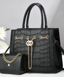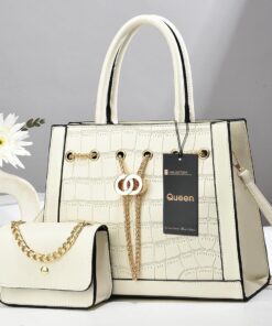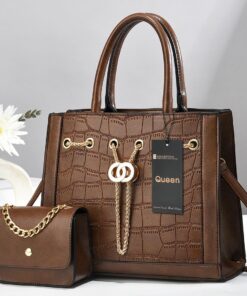 NEW QUEEN 2-in-1 Croc-Embossed Leather Tote & Clutch Handbag Set