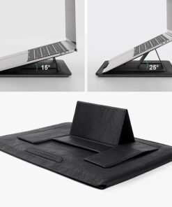 It is not only a storage bag, but also laptop stand and mouse mat. Adopt preferred PU, which is scratch-resistant and durable. Use sponge flannel lining inside for shock absorption. Equipped with magnetic stand to speed up the laptop cooling.