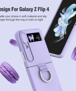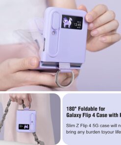 【Perfect Design】The well designed Z flip 4 case has the perfect cut out which provide the best fit and access to all ports and speakers while protecting your foldable device. Z Flip 4 case is cleverly designed with 4-corner shockproof, which can effectively reduce the damage caused by daily impacts. Z Flip 4 case with ring use whatever way you want!