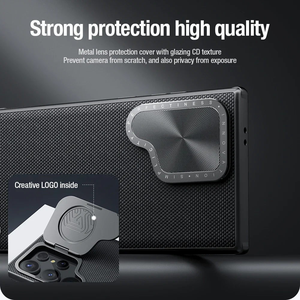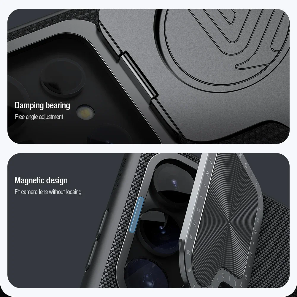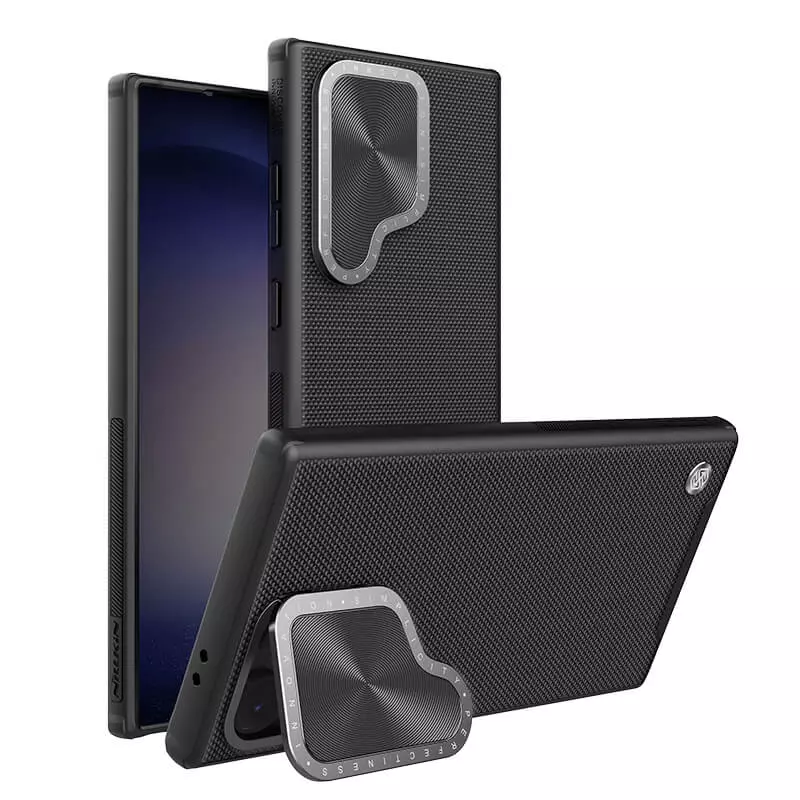 Nillkin Textured Prop Fiber Nylon Camera Flip Bracket Shockproof Back Cover Case For Samsung Galaxy S24 Ultra