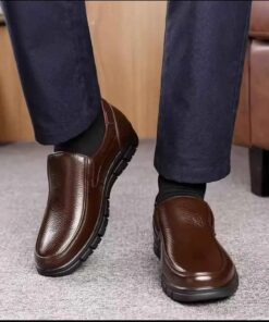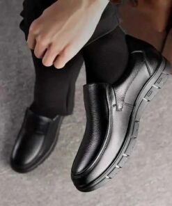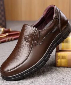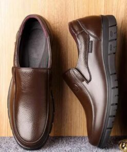 Premium Grain Leather Men’s Casual Loafers – Flat Platform Walking Shoes