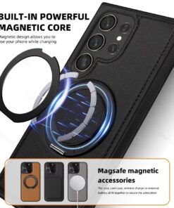 Samsung Galaxy S22 S23 S24 S25 Ultra Series Magsafe Leather 360° Adjustable Ring Shockproof Protective Slim Stand Case