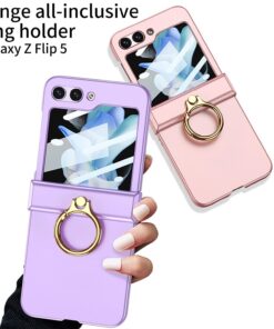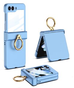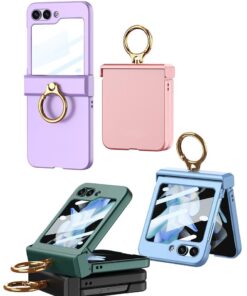 Samsung Galaxy Z Flip 5 5G GKK Ring Holder Hinged Case with Screen Film Protective Cover