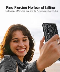 - COMPATIBILITY: Elegant case for Samsung Galaxy Z Fold 3 4 5 6 series , please double check your device model number to ensure a seamless fit. Metal finger ring for attaching to bag or belt