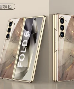 Samsung Galaxy Z Fold 5/6 Series Stylish Marble Gold Electroplated Frame with Patterned Glass, Built-in Screen Protector