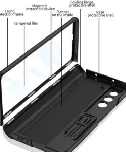 Magnetic Hinge Protective Cover : The included removable pen tray is convenient to store your smart stylus. It comes with a hidden bracket that you can turn into a mobile phone holder by gently opening it, and you can hide it when you don’t need it.