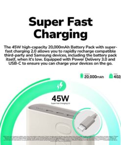 In today’s fast-paced world, staying connected is crucial. Samsung addresses this need with its OEM 10,000 mAh (25W) and 20,000 mAh (45W) USB-C port super-fast charging powerbanks. These powerbanks are designed to provide reliable, high-speed charging, ensuring your devices are always ready for use.