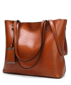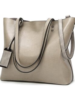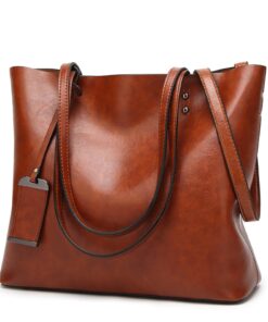 Waxing Leather bucket Double strap Pu Leather shoulder Women Handbag